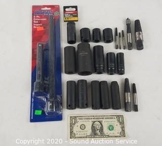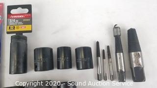 Lot #0180: Impact Sockets w/Extensions & Threading Dies