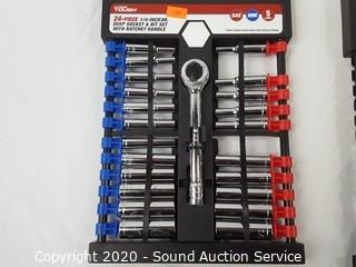 Item Description: Includes 1/4" drive sockets and ratchet, 3/8" drive extensions and adapters and various bits.