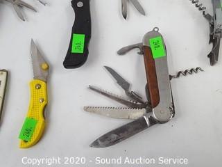 Lot #0240: Various Folding Pocket Knives & Multi Tool