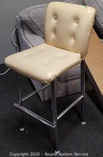 Lot #0256: Vinyl Button Tufted Chrome Counter Height Stool