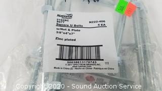 Lot #0368: (5) 3/8x4x7" Square U-Bolts w/Nut & Plate