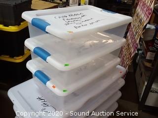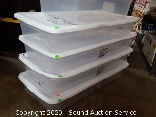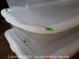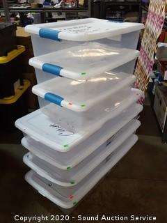 Lot #0024: 7 Clear Plastic Low Profile Totes w/ Lids