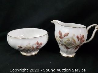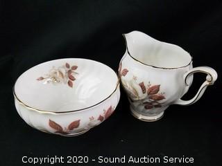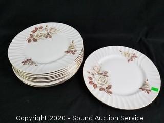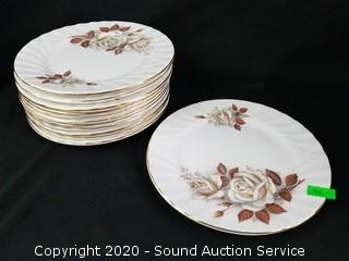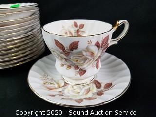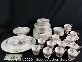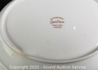 Lot #0100: 72pc Queen Anne "Autumn Rose" Fine China Dish Set