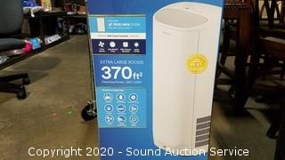Item Description: For extra large rooms, 370 sq. ft. Tiny clip in side unit that holds filter tray is broken so tray wont stay in. Otherwise like new, has power, works.