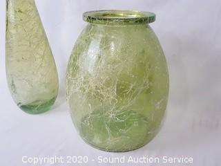 Lot #0019: Green & White Splatter Glass Vase & Bottle