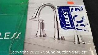 Item Description: Chrome finish, wide spread, fits 3 hole sinks. Model P3523LF.