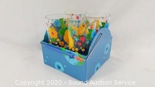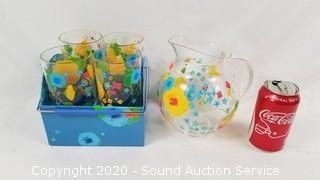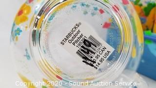 Lot #0242: Starbucks Floral Print Acrylic Pitcher & Glass Set