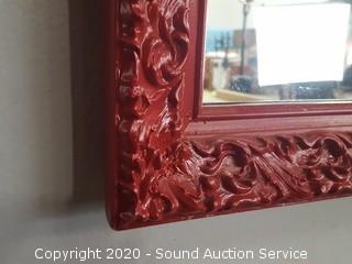 Lot #0015: Vtg. Red Gilded Decorative Wall Mirror
