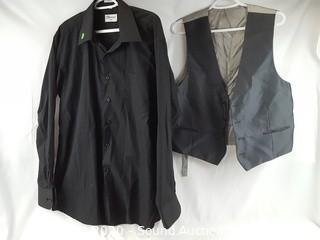 Item Description: Berlion Italy shirt XL, 17-17-1/2. 42R blazer, medium vest, 36/34 slacks.