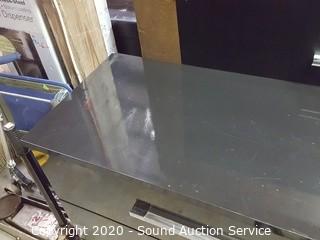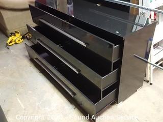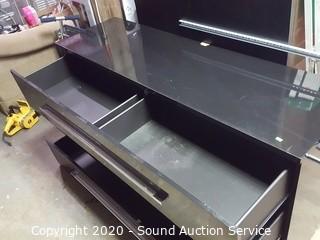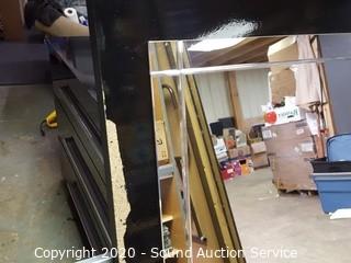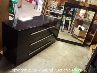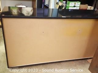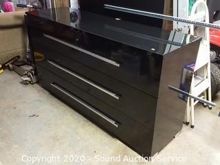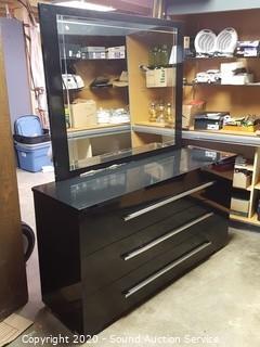 Item Description: 3 Full length drawers, roller drawer guides. In fair condition, finish has a spot on the top. Unable to mount mirror missing plates on back to mount too. 33.5" H x 63.5" W x 18.5"