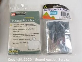 Item Description: Realtree camo vest hunting dog vest, hooded poncho, emergency blanket, gloves, para-cord, leather ammo holder. one head lamp is insanely bright multi mode.