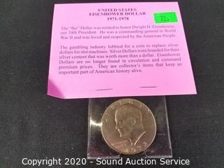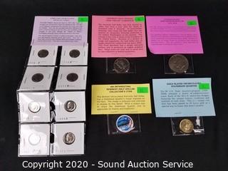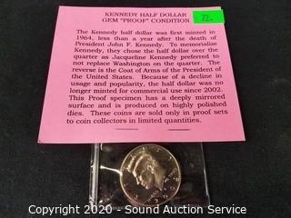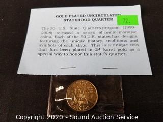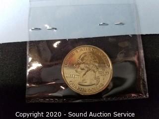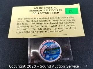 Item Description: Includes gem proof BU Kennedy half dollar painted in the Washington State 2007 Statehood Quarter Image, 1972 Eisenhower dollar, gold plated New Mexico statehood