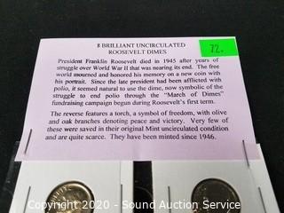Lot #0072: Kennedy Half Dollars, BU Roosevelt Dimes & More