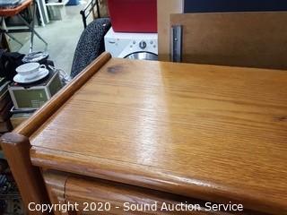 Item Description: Some staining on the top and bottom has some minor damage. Overall good working condition. 58" H x 36" W x 17" D.