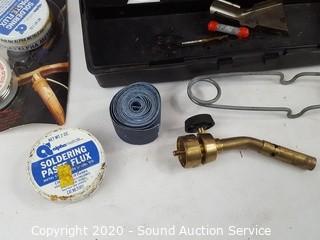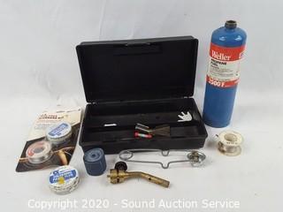 Item Description: Comes with tank (has some fuel), plumbers soldering kit, flux, striker, sand paper and more.