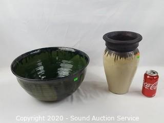 Item Description: Bowl is 7" H x 14" Dia. Signed S. Edwards. Vase is 11" x 7".