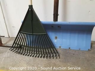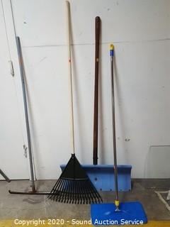 Lot #0167: Snow Shovel, Leaf Rake, Squeegee & Floor Cleaner