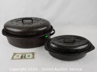 Lot #0092: Speckled Enamel 12" & 16" Roasters w/Lids