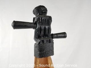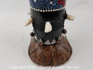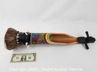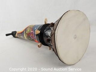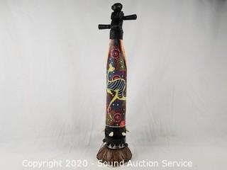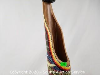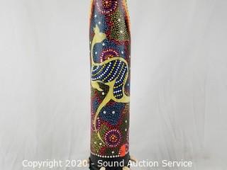 Item Description: Colorfully painted with image of a kangaroo, possibly Australian/Aboriginal?, adorned with teeth. In good condition, works, has an image carved into the head. 23" long, 5.75"