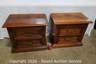Lot #0016: 2 Vtg. Stanley Furniture Fruitwood Nightstands