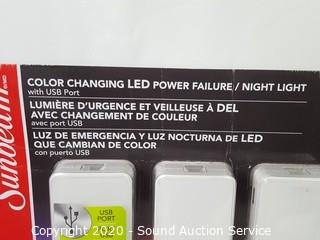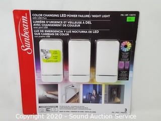 Lot #0338: 3pk Sunbeam LED RGB Power Failure Nightlights