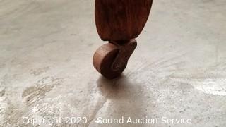 Item Description: Headboard, footboard, slats, rails, original wood casters on footboard, headboard has replacement modern casters. 26" & 40" H x 56" W.