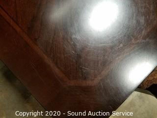 Beautiful Modern King Jade Dining Set & Hutch, Magnificent Side Entry Beveled Glass Curio Cabinet, Stunning Leaded Stained Glass Floor Lamp, Unique Leaded Stained Glass Telephone Lamp, Unique Leaded Stained Glass Telephone Lamp, Tile Top Patio Table w/6 Chairs, Shark Navigator Lift-Away Bagless Vacuum, Antique Hand Forged Iron Log Boom Chains, Live Palm Plant, Philodendrons, Petra Croton & Other Plants, Vtg. Mersman Mahogany Leather Top Furniture, New Starbuck Mugs & Collectibles, Antique 1899 Bible & Declaration of Independence, Personal Hygiene Products, Home Improvement, Bedding & Much More!!!