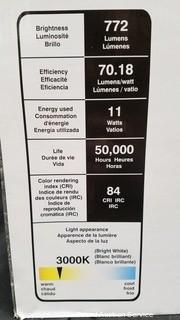 Item Description: Burnished bronze finish with clear hammered glass. 14.5" H x 9" W x 10.5" E. 11w, 772 Lumens, 3000k color.