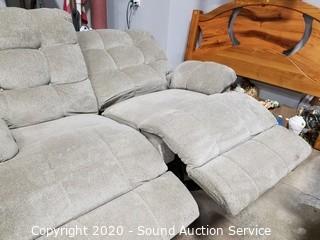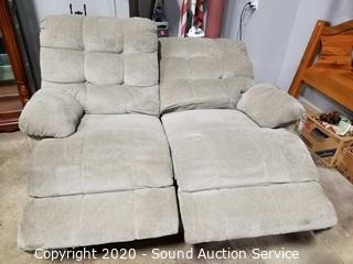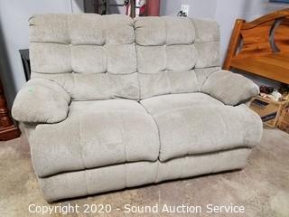 Lot #0006: Nice Taupe Fabric Loveseat Dual Recliner