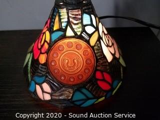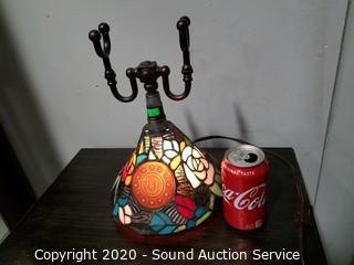 Lot #0005: Unique Leaded Stained Glass Telephone Lamp