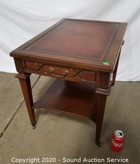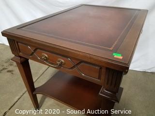 Lot #0023: Vtg. Mersman Mahogany Leather Top Side Table