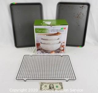 Lot #0309: 2 Nordic Ware 13x18 Baking Sheets &2 Harvest Bowls