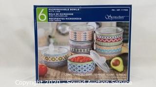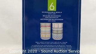 Lot #0393: 6 New Microwavable Bowls w/Lids