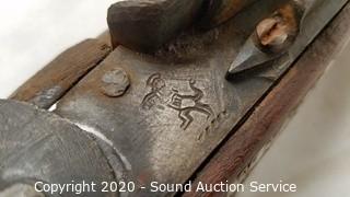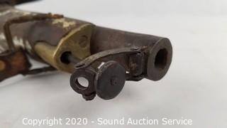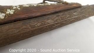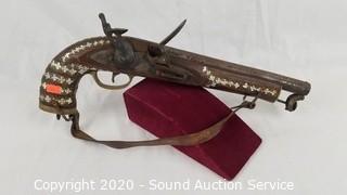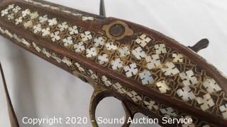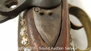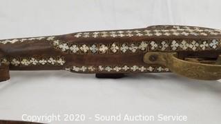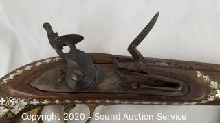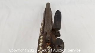Lot #0022:     Antique 1828 MOP Inlaid Flint Lock Camel Pistol