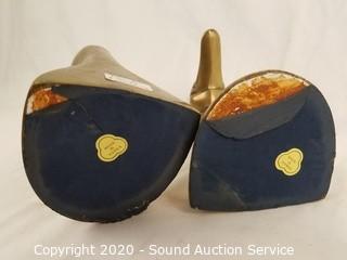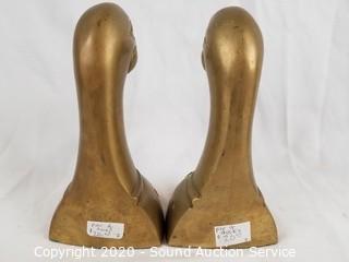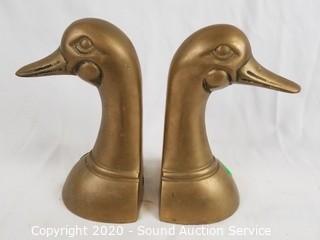 Lot #0119: Brass Duck Book Ends & Signed Figures