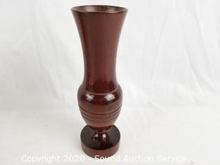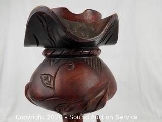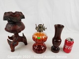 Lot #0247: Hand Carved Wood Art Piece, Vase & Oil Lamp