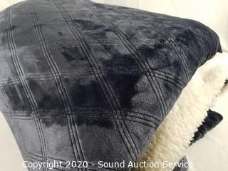 Lot #0244: Monte & Jardin Blue Plush Sherpa Queen Blanket