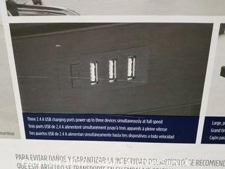 Description Cont. 1: Programmable Height Settings, USB Charger Powers Up to 3 Devices. LED Touch Control on the Glass Desktop