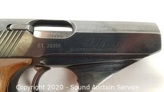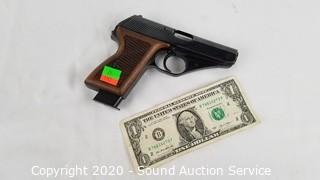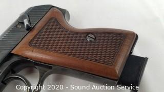 Item Description: By Interarms, Alexandria Virginia, USA. Marked 9mm Kurz which is another name for .380 ACP. Appears to be in good firing condition. Serial 01.39356. Wood grip.