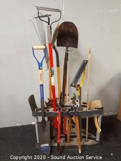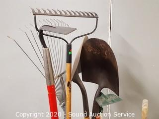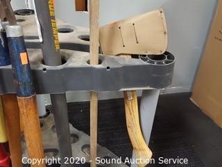 Item Description: Includes spade, brush rake, leaf rake, hoe, hand saws, loppers, shovels and hatchet.