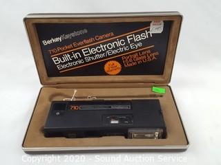 Item Description: Includes Berkey Keystone 710 Pocket Everflash camera with case, Revere Eight 8mm movie camera (viewing lens has a break) and Delco model 2465 AM/FM/Cassette radio.