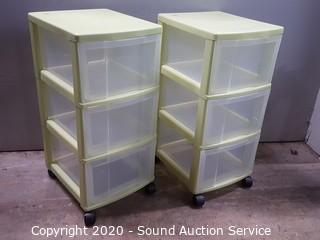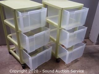 Lot #0046: (2) 3 Drawer Green Rolling Organizers