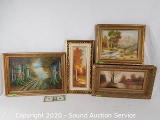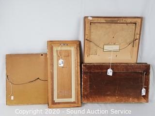 Item Description: Only see one with signature, Y. Wood. All look to be original, in gold frames. 7.5" x 15.5", 10.5" x 12.5", 9.5" x 16.5" & 12" x 17".