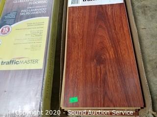 Item Description: Natural wood grain look and feel, glueless. Each box contains 9'pc. 50.63" x 7.64" x 7mm.