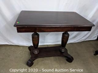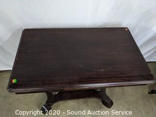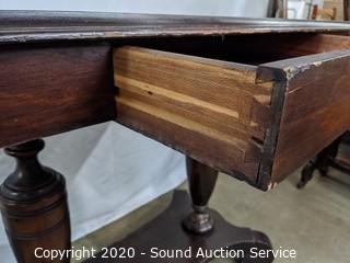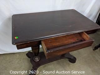 Description Cont. 1: H x 12.5" W x 18" D x 18" to Seat Chairs. Table has a single drawer 30" H x 22" x 35.5". Some wear to the finish.