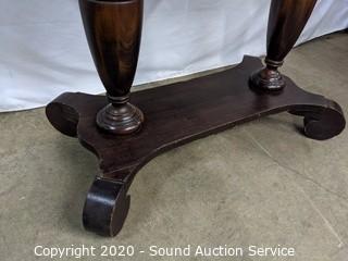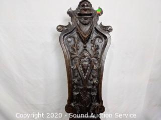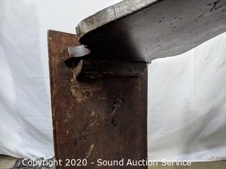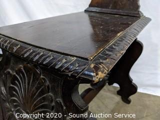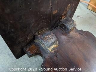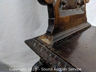 Item Description: Some wear on the chairs, original crafted with no hardware, do see some screws have been added, missing a piece of trim on one chair. Look to be all hand tooled carved. 47"