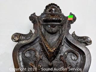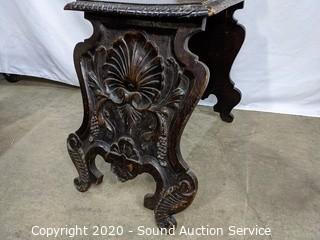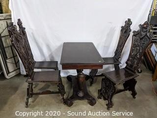 Lot #0044: Antique Mahogany Table w/4 Medieval Carved Chairs