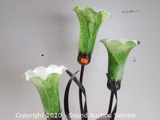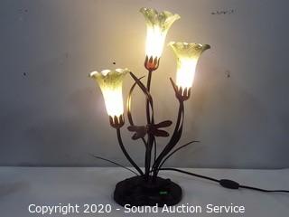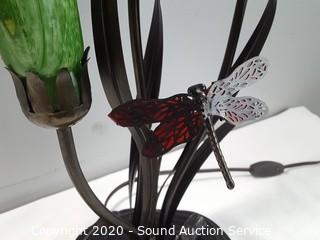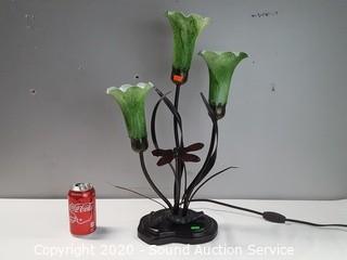 Lot #0041: Beautiful Art Nouveau Dragonfly 3-Light Lamp