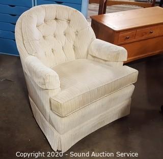 Lot #0042: Ethan Allen Down Fill Fabric Swivel Rocking Chair