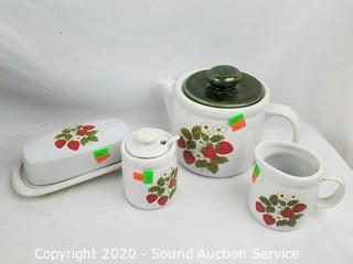 Lot #0206: McCoy Strawberry Print Tableware & Canisters